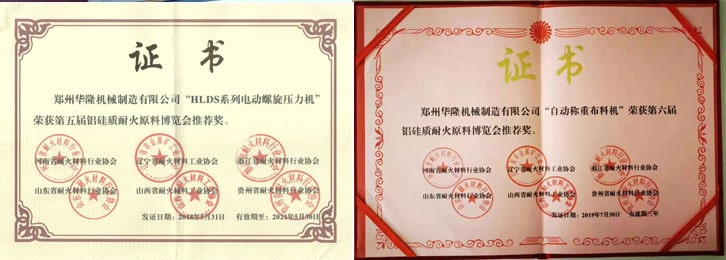 很榮幸,繼華隆數控壓力機后,華隆“自動稱重布料機”再次榮獲第六屆鋁硅質耐火原料博覽會推薦獎。感謝各位專家和領導的認可,華隆將不負眾望,繼續為耐材行業的發展而努力。
